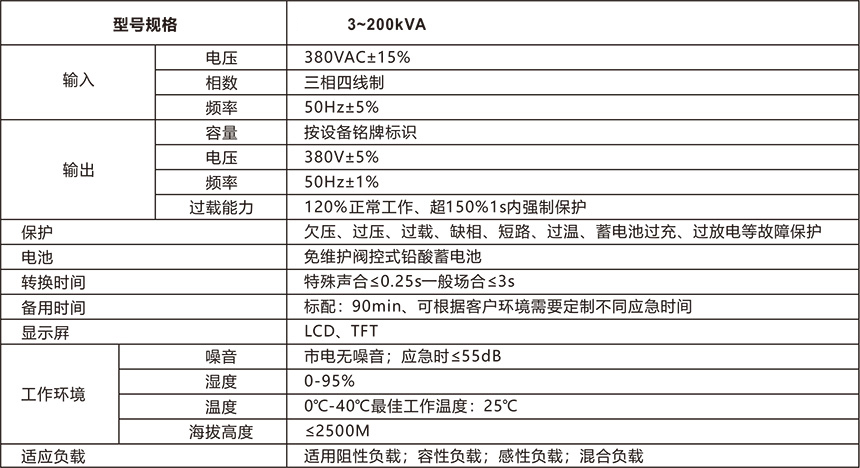 注:三相应急电源中每一相的输出功率仅为EPS标称容量的1/3,不可偏相太多。